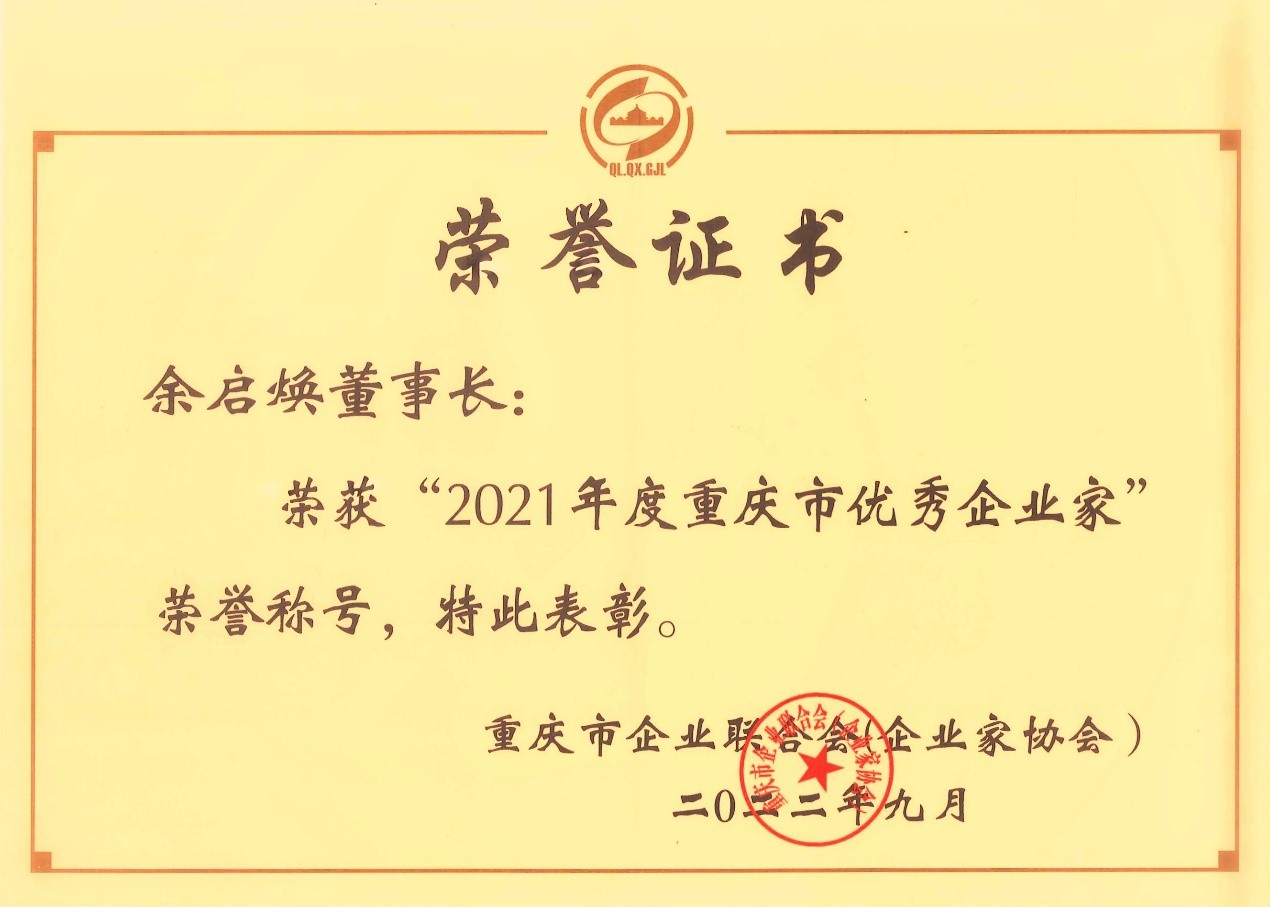 喜報(bào) | 余啟煥董事長(zhǎng)榮膺“2021年度重慶市優(yōu)秀企業(yè)家”