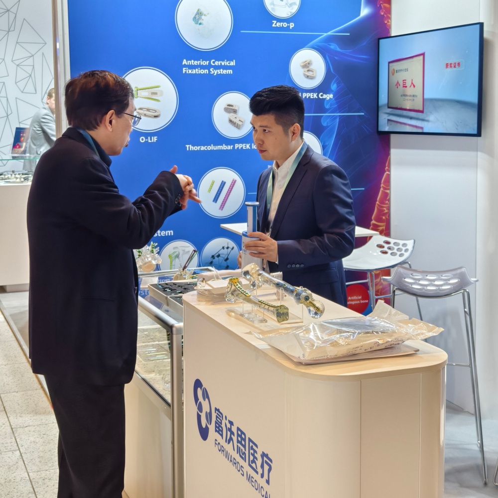 重慶富沃思醫療器械有限公司作為西部地區領先的骨科耗材生產企業,攜其脊柱、創傷、運動醫學及創面管理等領域的核心產品參展。公司展臺吸引了眾多專家與經銷商,他們對富沃思醫療的產品表現出了濃厚的興趣,部分專家和經銷商表達了初步的合作意向。